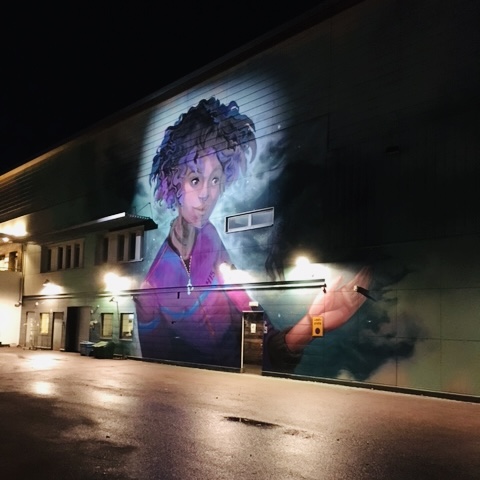 Längs en av centrats långväggar breder en 55 meter lång muralmålning av konstnären Jan Persson ut sig. Verket, inspirerat av Mästaren & Margarita, bjuder in till fantasi, berättelser och nya perspektiv – precis som platsen själv. På en annan del av fasade finns muralmålningen Rymdflickan av Elina Metso, en del av Artscape. Rymdflickan har blivit en kär symbol för Rymdtorget.